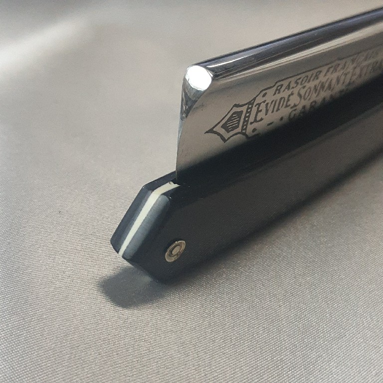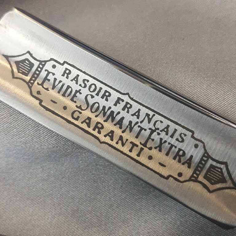 Надпись на лезвии: "RASOIR FRANCAIS EVIDE SONNANT EXTRA GARANTY" (изготовлено электрохимическим способом )
