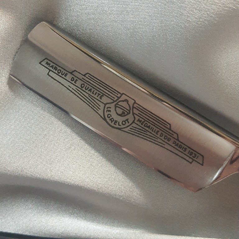 Надпись на лезвии: LE GRELOT, ЗНАК КАЧЕСТВА, MEDAILLE D'OR PARIS 1931 (изготовлено электрохимическим способом )