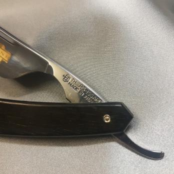 Опасная бритва марки "SPECIAL TOUTES BARBES el PEAU SENSIBLE" "СПЕЦИАЛЬНО ДЛЯ ЛЮБОЙ БОРОДЫ И ЧУВСТВИТЕЛЬНОЙ КОЖИ" производства Thiers Issard, французского производителя.