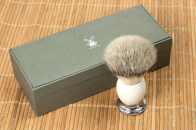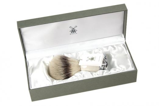 Кисточка-помазок для бритья Muehle Pinsel серии Sophist, синт.волос "Серебряная фибра", ручка из фарфора