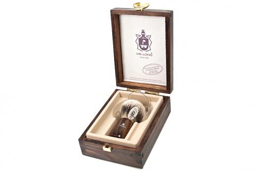 Высота щетины около 57 мм, узел 24 мм. Прозрачная пластмассовая подставка в комплекте. Подарочная деревянная коробка.