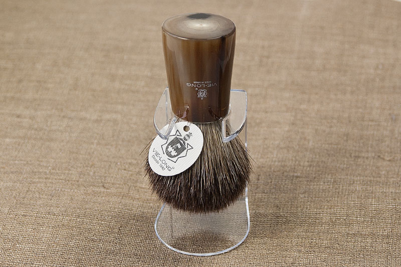 Кисточка-помазок для бритья Vie-Long, черный барсучий ворс, натурал. рог