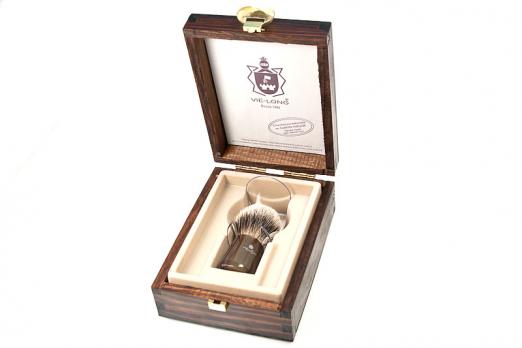 Кисточка-помазок для бритья VIE-LONG, "серебряный барсук", натур. рог
