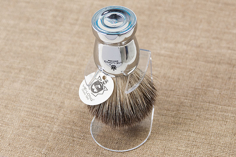 Кисточка-помазок для бритья Vie-Long, серый барсучий ворс, пластик+хром