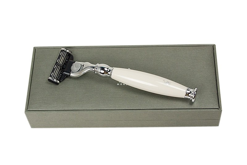 Станок адаптирован под бритвенную систему Gillette Fusion, ручка из фарфора/хромированного металла.