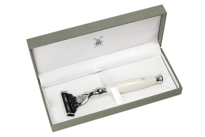 Бритва безопасная Muehle Pinsel адаптированная под бритвенную систему Gillette Mach3 (фарфор)
