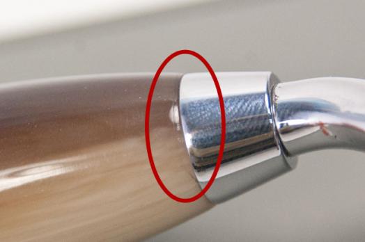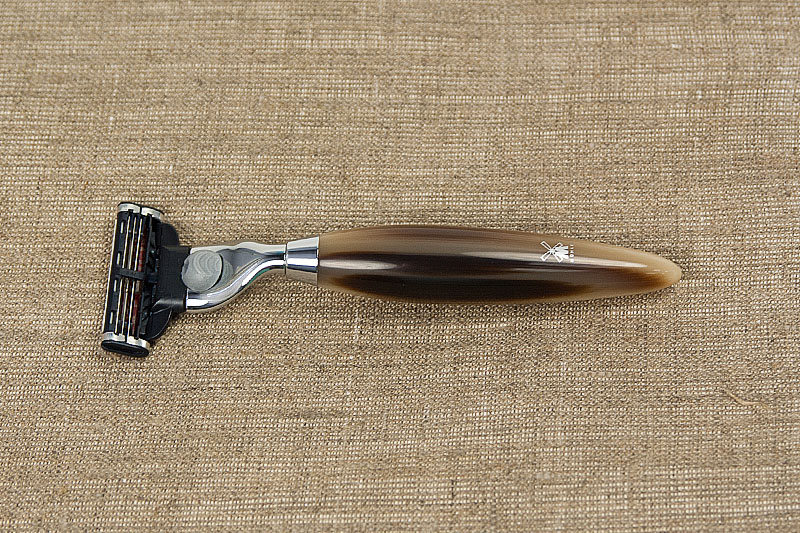 Станок адаптирован под бритвенную систему Gillette Mach3, с бежево-коричневой ручкой из смолы.