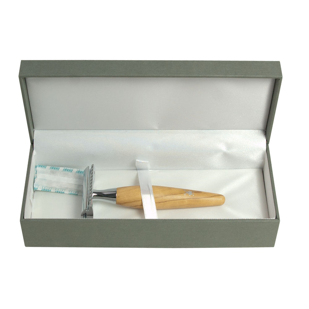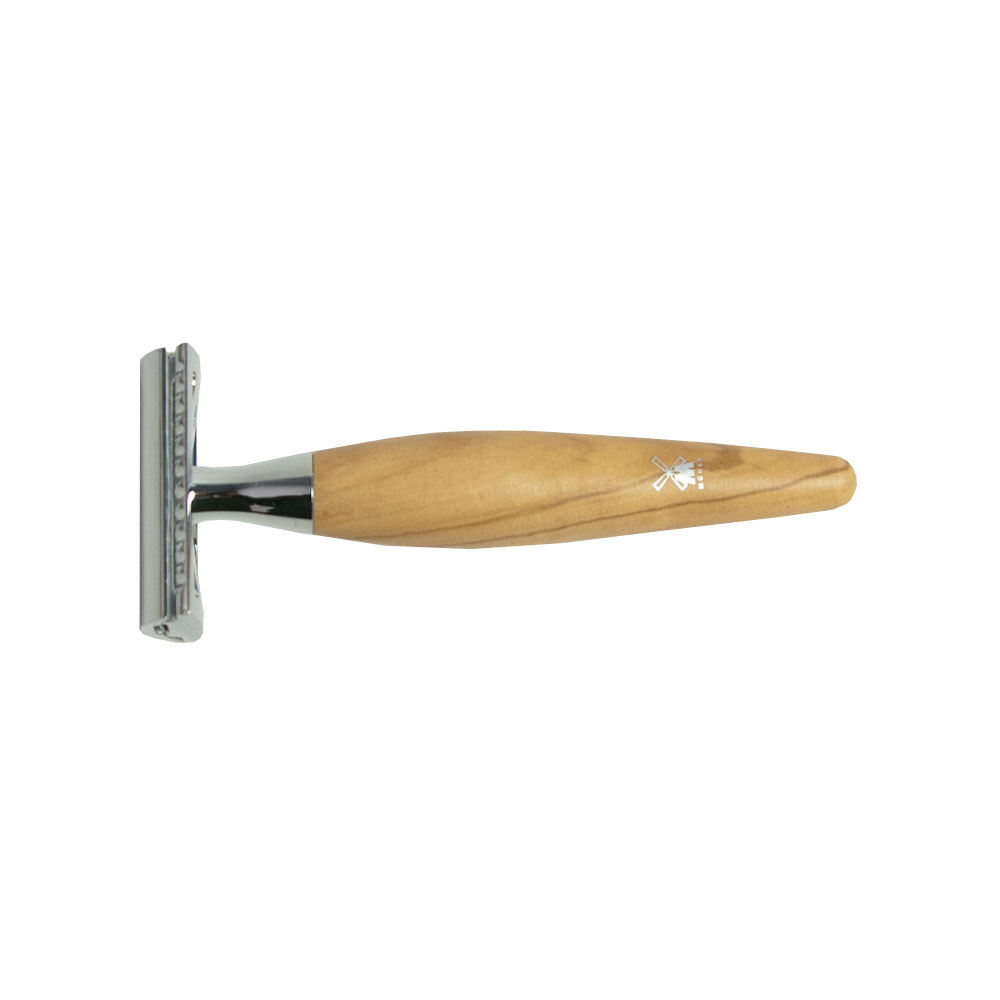 Cтанoк для бритья Muehle Pinsel Т-образный KOSMO с прямой головкой. Ручка из оливкового дерева. В комплекте одно лезвие.
