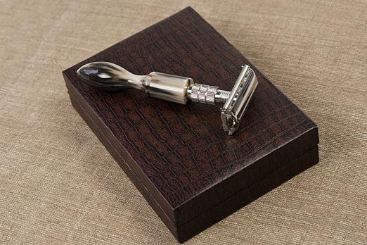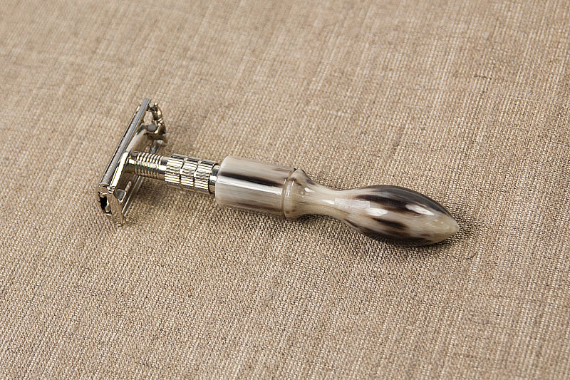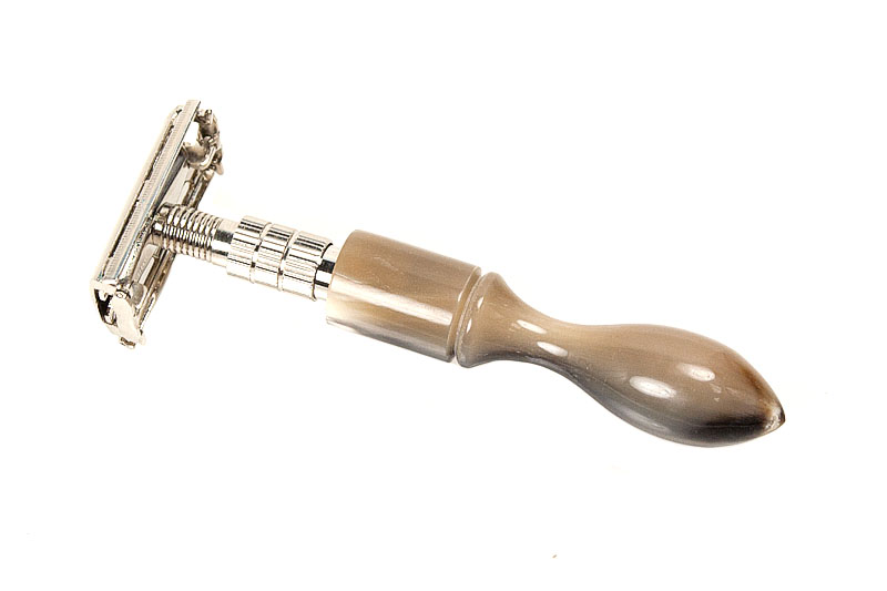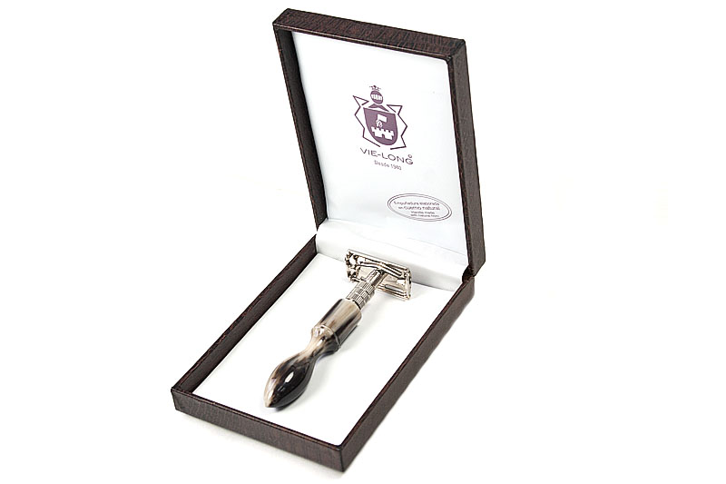 Станок для бритья Vie-Long Т-образный "прямой срез", никелированная латунь + рог, "бабочка"